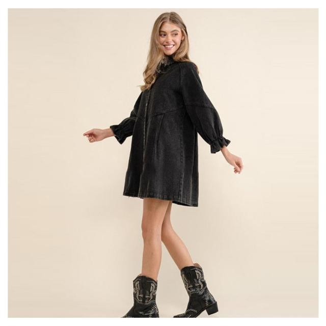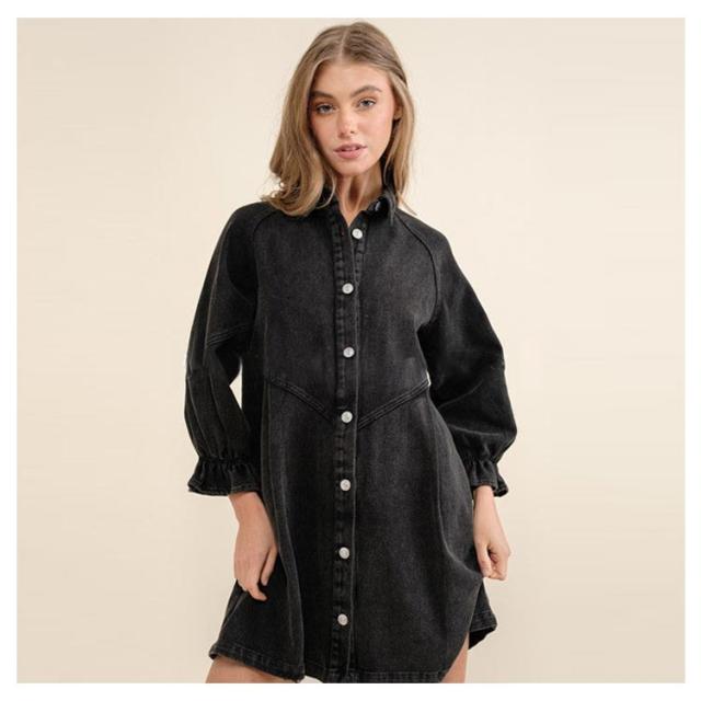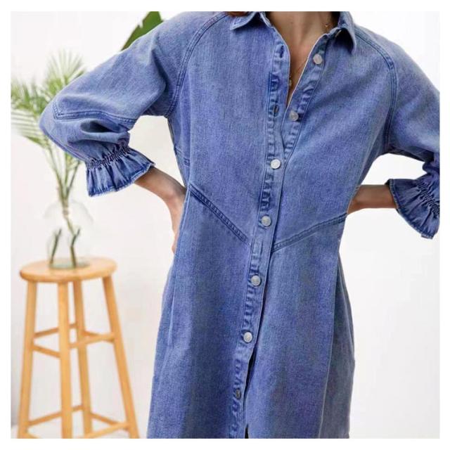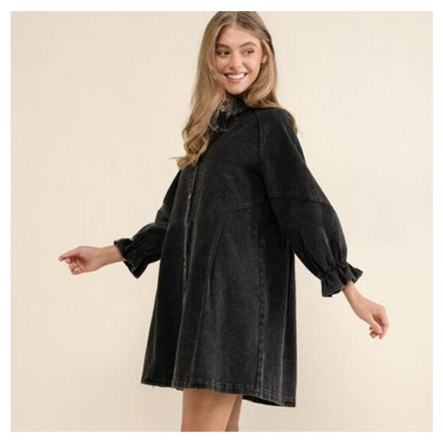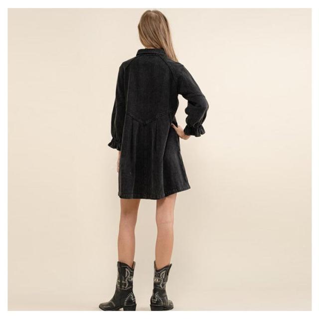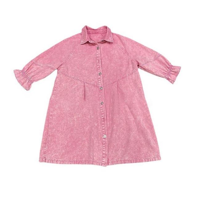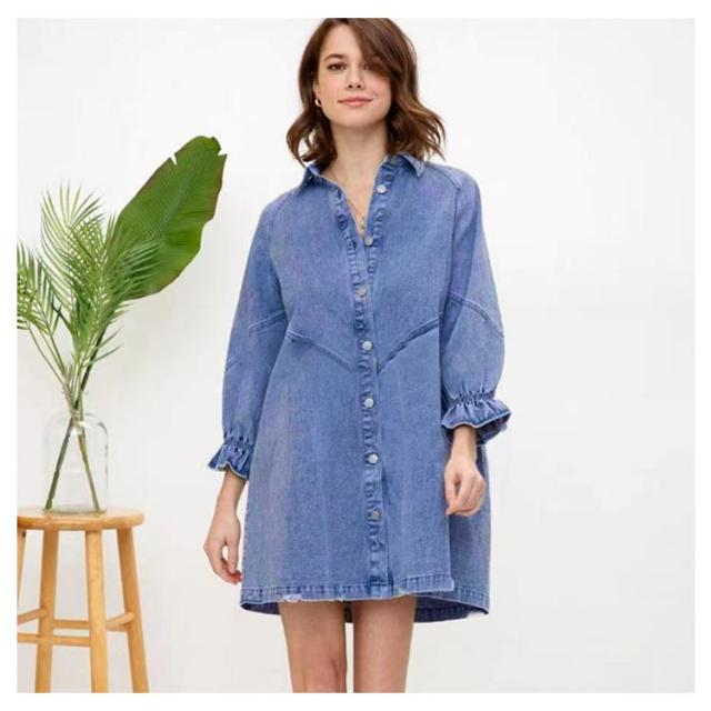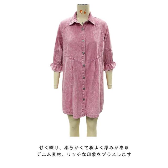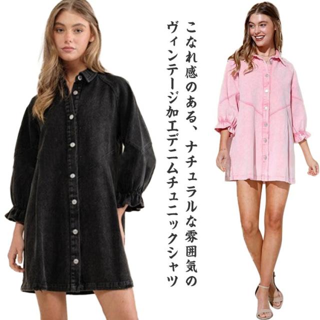 デニムシャツワンピース デニムワンピース デニムチュニック オーバーシャツ ロングシャツ チュニックシャツ デニム 羽織り 長袖 長そでヴィンテージウォッシュ加工 送料無料 ロング丈 大きいサイズ ゆったり 春 ロングシャツ