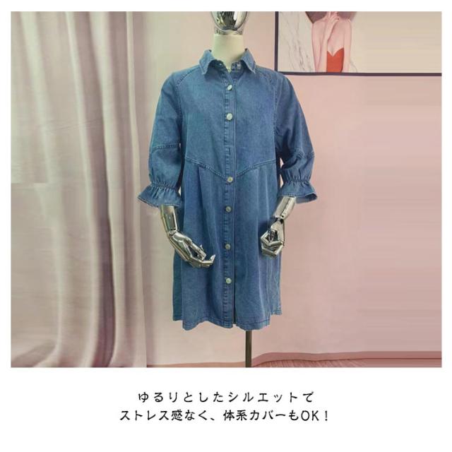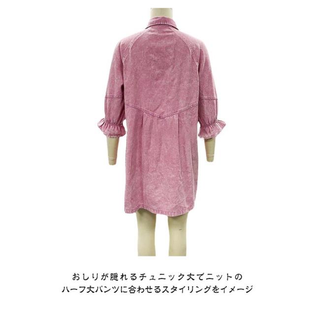 | こなれ感のある、ナチュラルな雰囲気のヴィンテージ加工デニムチュニックシャツ。 甘く織り、柔らかくて程よく厚みがあるデニム素材、リッチな印象をプラスします。 肩を小さく、袖にはギャザーをたくさんいれてボリュームのあるスリーブ。 おしりが隠れるチュニック丈でニットのハーフ丈パンツに合わせるスタイリングをイメージ。 ゆるりとしたシルエットでストレス感なく、体系カバーもOK! 飽きの来ないシンプルなデザインで、年齢を問わず幅広く着用いただけます。 | |