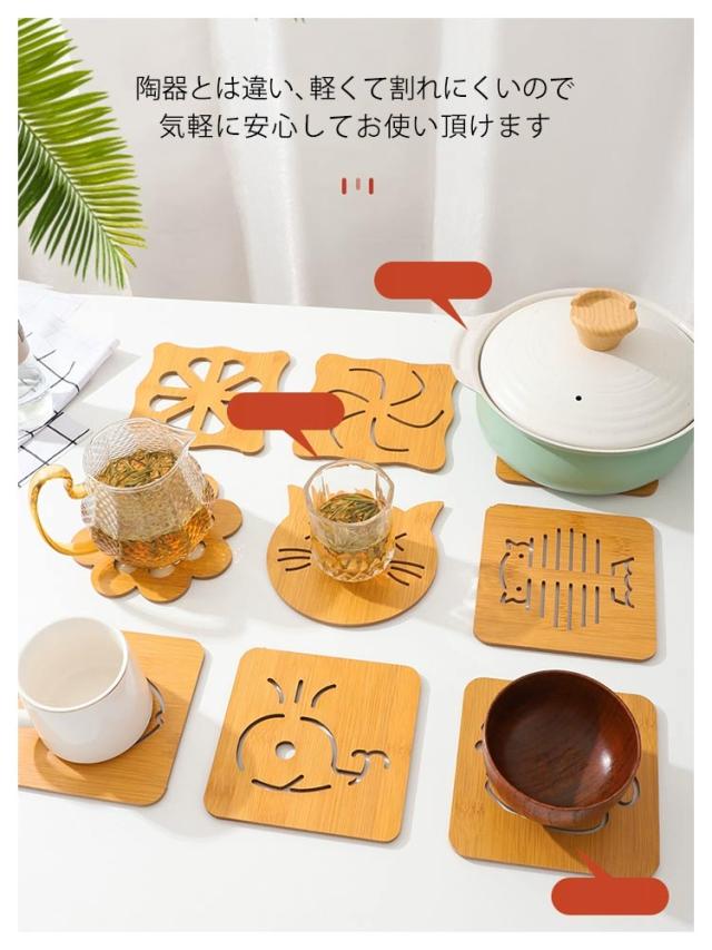 鍋敷き 4枚入り 木 木製鍋敷き 鍋しき 鍋敷 なべしき キッチン用品 調理道具 調理 料理 調理用品 キッチングッズ 動物 おしゃれ かわいい プレゼント ギフト鍋敷き なべしき 鍋敷 鍋置き 花瓶置き 鉢置き 耐熱 キッチン用品 雑貨 小物 耐熱性