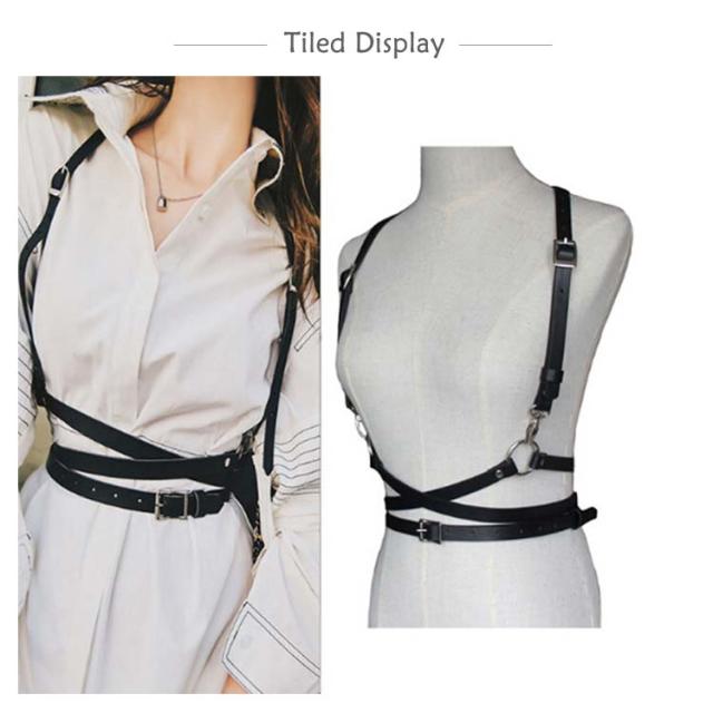 ハーネス ベルト サスペンダー ゴスロリ風 ボディーハーネス V系ボンテージ ハーネスベルト レザー 黒 ブラック 多重ベルト 重ね着スタイル チェーン バングル 細見え ベルト レディース 調整可能 韓国ファッション 送料無料