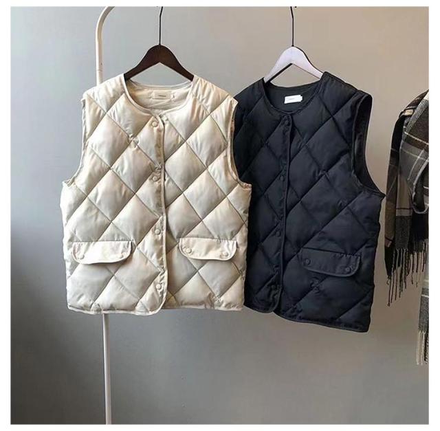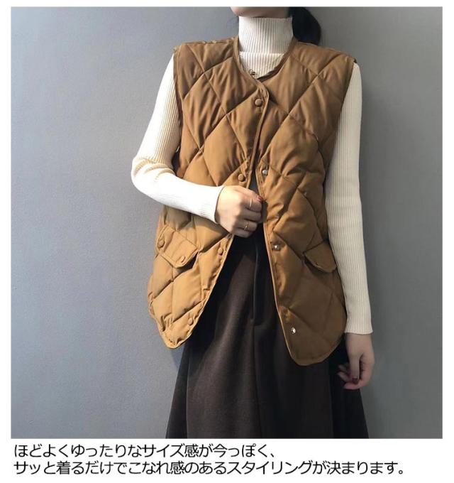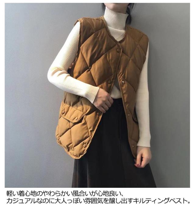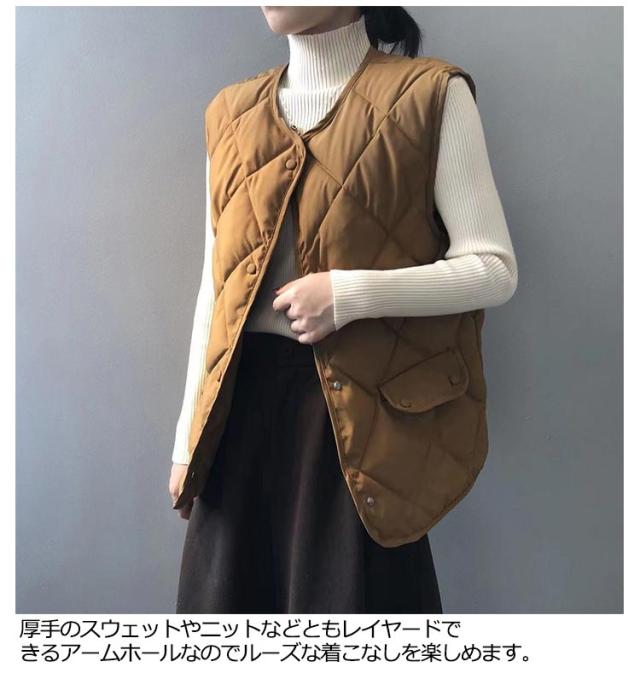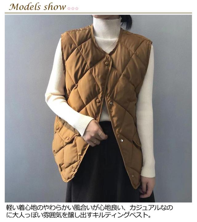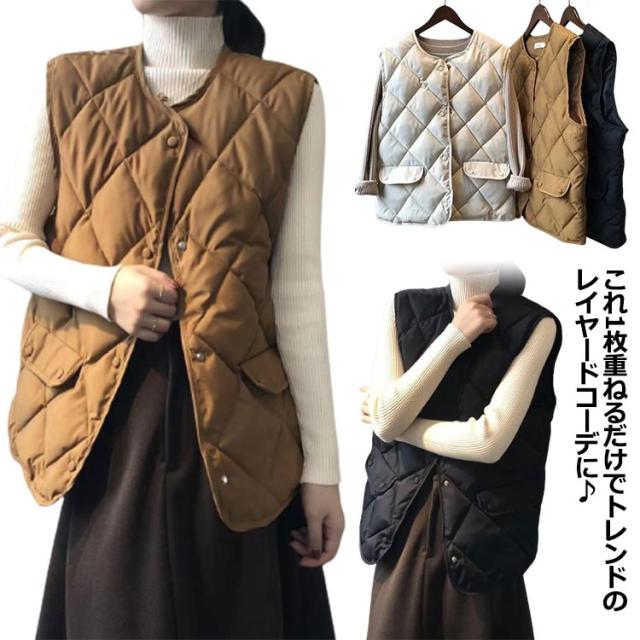 ベスト レディース キルティングベスト 中綿ベスト 前開き キルト 中綿 キルティング ショートベスト 秋冬 ノースリーブ ノーカラー ジャケット 大人 カジュアル 暖かい 防寒 軽量 通勤 普段着 大きいサイズ 無地 シンプル 20代 30代 40代 【送無】
