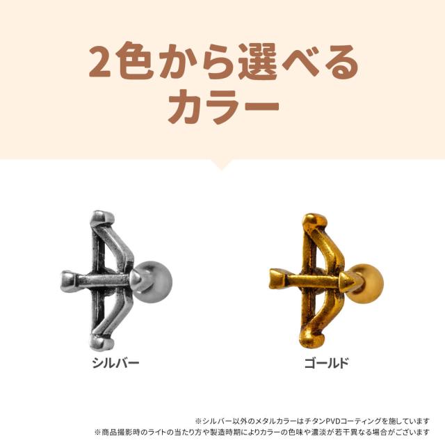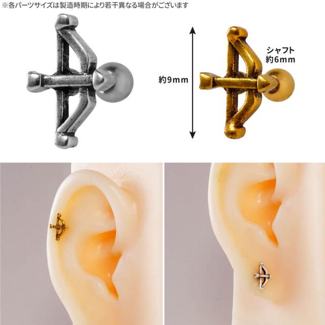 アロー 弓矢 モチーフ ストレートバーベル 14G 16G 18G 20G サージカルステンレス ヘリックス アウターコンク 軟骨ピアス ボディピアス