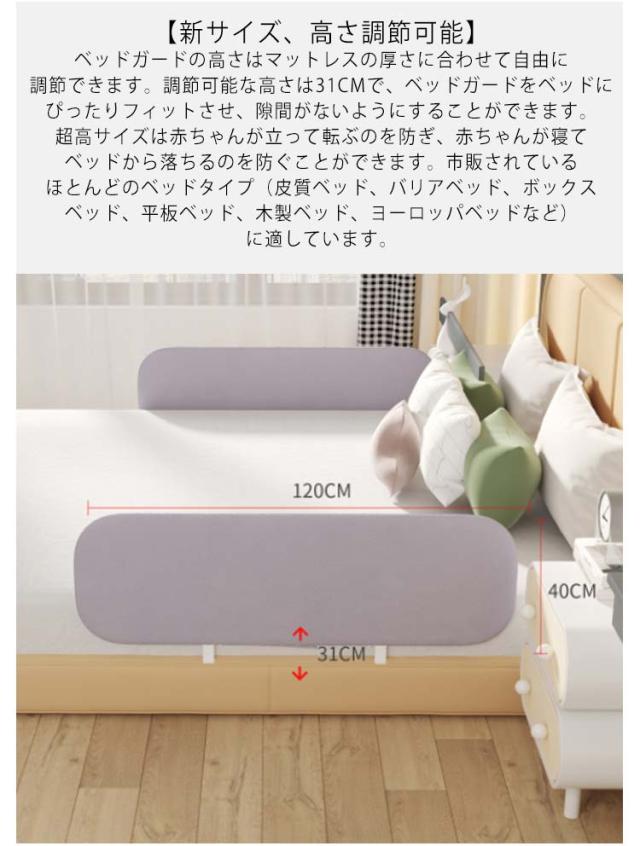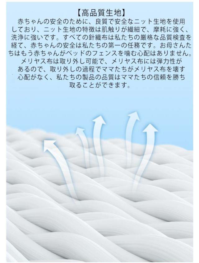 | 【新サイズ、高さ調節可能】。ベッドガードの高さはマットレスの厚さに合わせて自由に調節できます。調節可能な高さは31CMで、ベッドガードをベッドにぴったりフィットさせ、隙間がないようにすることができます。超高サイズは赤ちゃんが立って転ぶのを防ぎ、赤ちゃんが寝てベッドから落ちるのを防ぐことができます。市販されているほとんどのベッドタイプ(皮質ベッド、バリアベッド、ボックスベッド、平板ベッド、木製ベッド、ヨーロッパベッドなど)に適しています。 【折りたたみ式デザイン】ママとパパはまだベッドの片付けに悩んでいるの?3254人のお母さんを調査した結果、76%のお母さんたちがベッドガードに折り畳み収納機能があると便利だと答えていました。折りたたみステップは簡単で、わずか10秒で完成します。お母さんとお父さんは掃除中に簡単に収納でき、家庭のスペースを取らずに、散らかった生活に別れを告げることができます。ママとパパがより簡単に仕事を終え、効率的な状態を保つのを助けます。 【高強度鋼管、内蔵防撞綿】鋼管の厚さを強化し、硬度の高い鋼管材質を使用する、製品の使用寿命を高め、しかも全体の安定性をより高くした。赤ちゃんの安全に絶対的な保障を提供しています。衝突防止綿を内蔵することで、赤ちゃんが寝ている間に寝返りを打って衝突することを防止でき、赤ちゃんに安全で信頼性の高い睡眠環境を提供することができます。 【高品質生地】赤ちゃんの安全のために、良質で安全なニット生地を使用しており、ニット生地の特徴は肌触りが繊細で、摩耗に強く、洗浄に強いです。すべての針織布は私たちの厳格な品質検査を経て、赤ちゃんの安全は私たちの第一の任務です。お母さんたちはもう赤ちゃんがベッドのフェンスを噛む心配はありません。メリヤス布は取り外し可能で、メリヤス布には弾力性があるので、取り外しの過程でママたちがメリヤス布を壊す心配がなく、私たちの製品の品質はママたちの信頼を勝ち取ることができます。 【インストール不要、携帯可能】お母さんとお父さんのインストールの悩みを減らし、貴重な時間を節約しました。私たちは手提げ袋を1つ用意しており、お母さんお父さんは赤ちゃんを連れて旅行に行くことができ、いつでも携帯することができ、しかも車内空間を占有することなく、赤ちゃんがホテルで寝ている時に落ちる問題を徹底的に解決し、赤ちゃんの | |