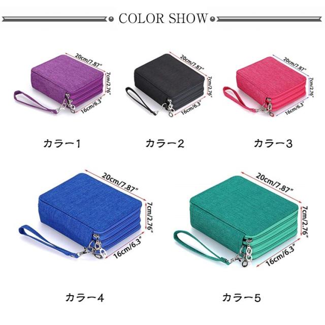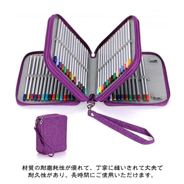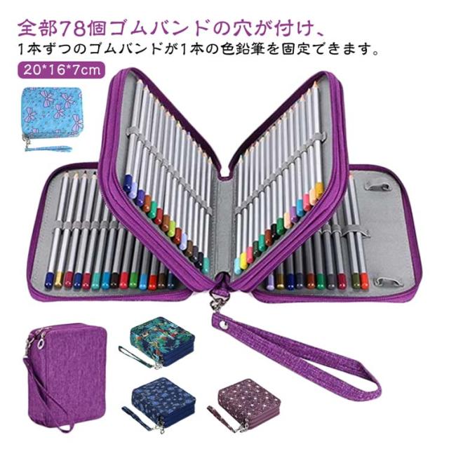 | 全部78個ゴムバンドの穴が付け、1本ずつのゴムバンドが1本の色鉛筆を固定できます。 ペン先の折れ や色鉛筆の紛失などがちゃんと保護出来る構造になります。 材質の耐磨耗性が優れて、丁寧に縫いされて丈夫で耐久性があり、長時間にご使用いただけます。 汚れの場合、水洗いができます。 快適な持ち手がついているのでポータブル可能で、学校、旅行、スケッチなどの場合には持ち運べ便利です。 プレゼントとしてお勧めます! | |