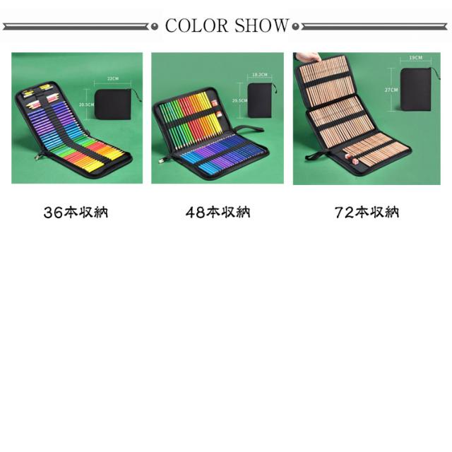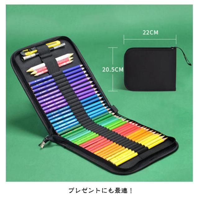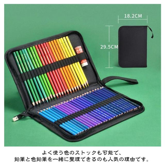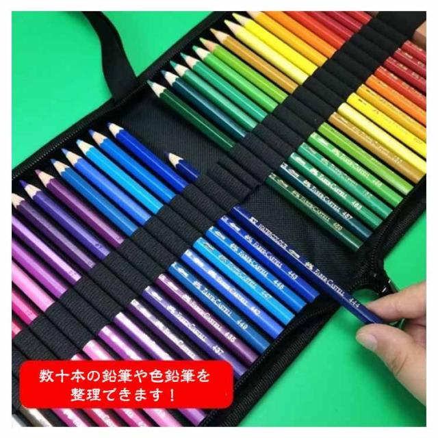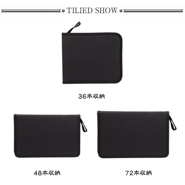 色鉛筆ケース 色鉛筆 収納 ケース 72本 36本 48本 収納可能 筆箱 大容量 鉛筆 ケース 黒 シンプル 丈夫 便利 持ち運び 美大 美術 お絵描き 子供 大人 ぬり絵 塗り絵 えんぴつ 色えんぴつ ファスナー ゴム 色鉛筆なし 画材 スケッチ 写生