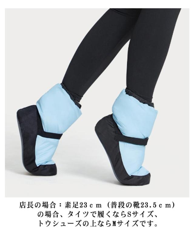 | 足首をあたためられる、ブーツタイプのウォームアップシューズ。メンズ・レディース兼用。 素足やタイツなどの上に、またトウシューズの上から履いていただくタイプです。 店長の場合:素足23cm(普段の靴23.5cm)の場合、タイツで履くならSサイズ、トウシューズの上ならMサイズです。 ウォームアップやリハーサルの時に足を冷えから守ってくれます。 底がしっかりあるので、安定した履き心地! 足裏はゴムなのですべりにくく安心♪ 履き口と足首あたりにはマジックテープで調整可能。 しっかり温めてくれます! 室内でも足首が冷えて困っている方には、ルームシューズとしても◎ 舞台・発表会を控えた方へのプレゼントにも、お勧めです★ | |
