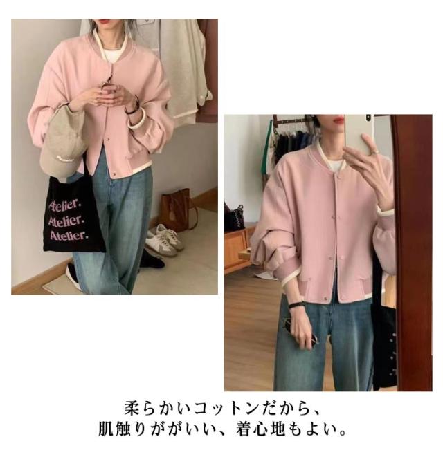 スタジャン 春秋 無地 ショート コート ジャケット ライトアウター 韓国風 ボタン ポケット リブ アウター ブルゾン お出かけ 秋服 着回し オシャレ ジュニア 長袖 通気性抜群 野球服 通学 通勤 大人 送料無料