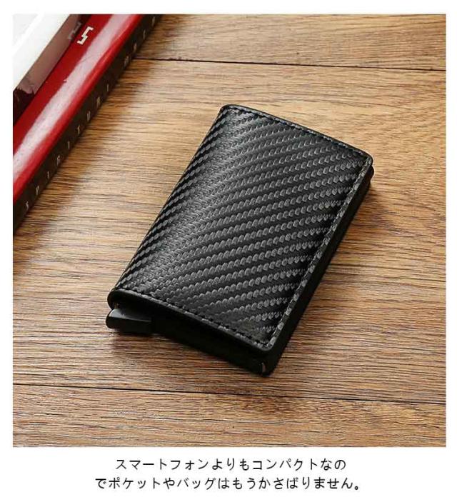 カードケース クレジットカードケース スキミング防止 スライド式 ワンタッチ 磁気防止 カーボンパターン カード入れ メンズ レディース スリム 薄型 薄い クレジットカード icカード RFID カードホルダー