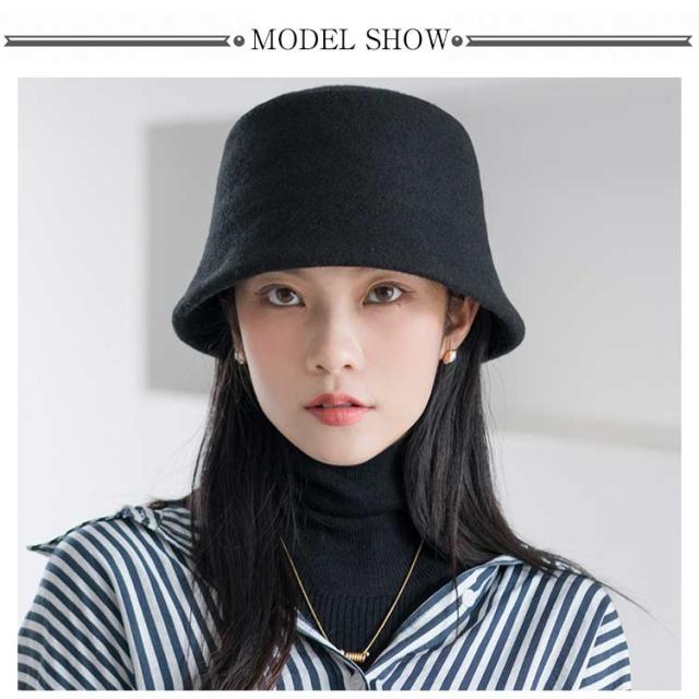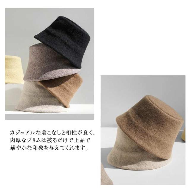 バケットハット 帽子 レディース ウール混 ウールハット 折りたたみ 深い おしゃれ かわいい 軽量 暖かい 防寒対策 サイズ調整 ウールブレンド 小顔効果 高見え 無地