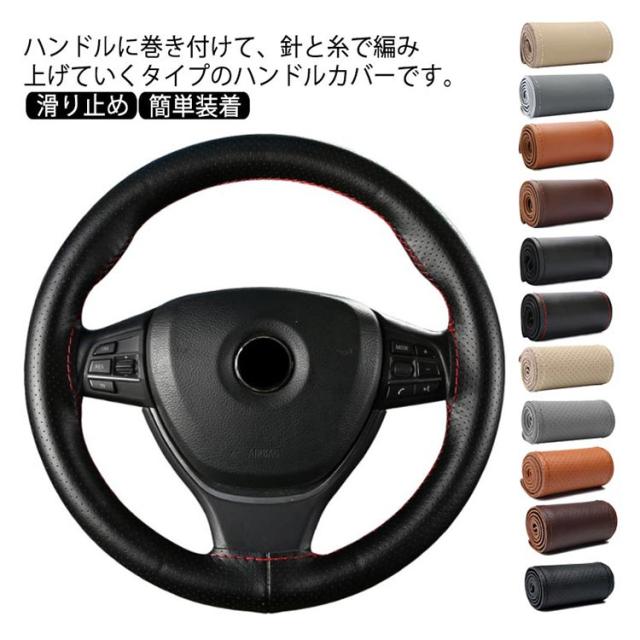 ハンドルカバー 編み込み式 ステアリングカバー 軽自動車 編み上げ ハンドル カバー 手縫い 通気 滑り止め 汚れ防止 撥水 握りやすい 簡単装着 コンパクトカー ミニバン 軽トラック 普通車 適合多車種 内装用品 春 夏 秋 冬 四季 汎用 おしゃれ 送料無料