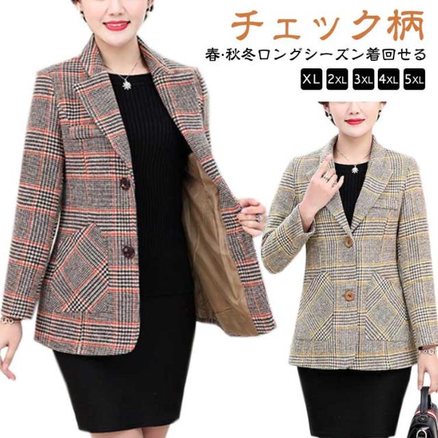 グレンチェック ジャケット レディース 長袖 アウター コート 羽織り カジュアル テーラードジャケット ゆったり 大きいサイズ ビジネス オフィス 秋冬 春 秋 冬 フォーマル モード エレガント おしゃれ かわいい かっこいい きれい 大人 チェック柄 上着 ビックシルエット