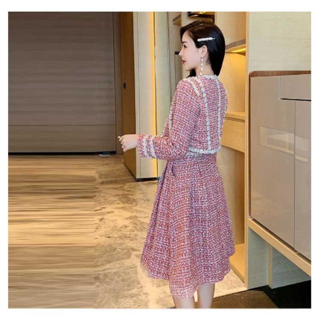 ツイード ワンピース セットアップ 韓国 ジャケット 七五三 ママ おしゃれ 母親 服装 親 スーツ 同窓会ドレス 卒業式 入学式 卒園式 入園式 成人式 セレモニーワンピース 春 秋 冬 長袖 レディース ジャンパースカート ジャンスカ パール ロング ピンク 80年代風