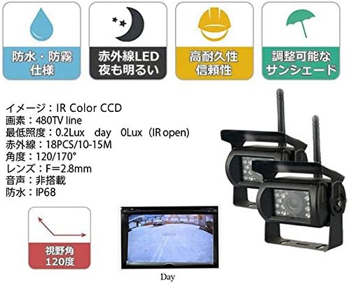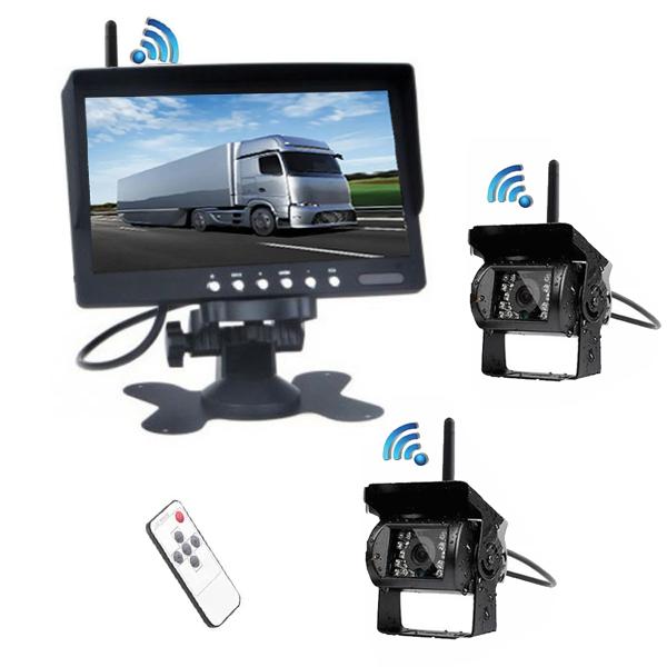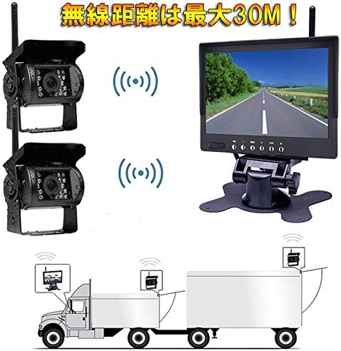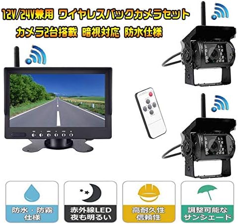 全国送料無料 バックカメラ セット 車載モニター バックモニター 7インチ 12V/24V 遠隔操作 ワイヤレス 無線 防水 バックカメラ2個