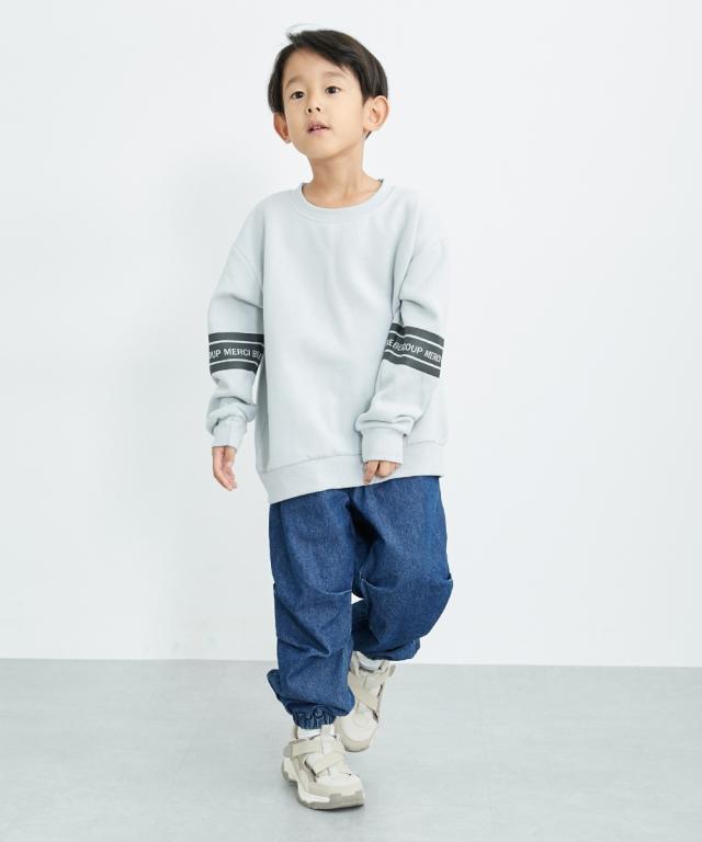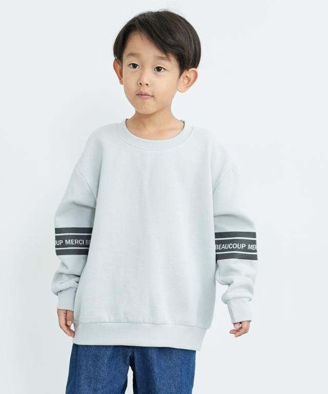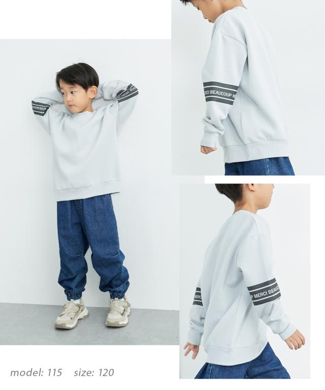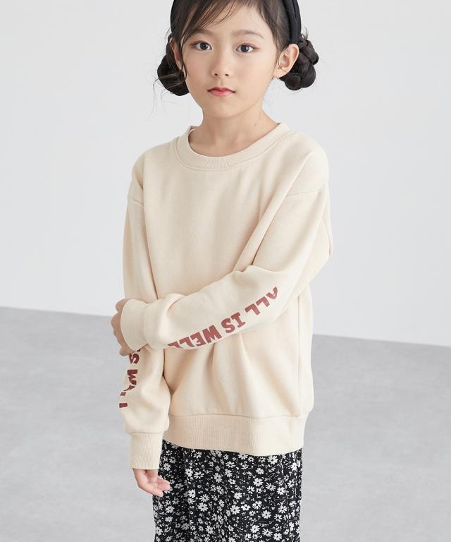 ビッグシルエット袖プリント裏起毛トレーナー