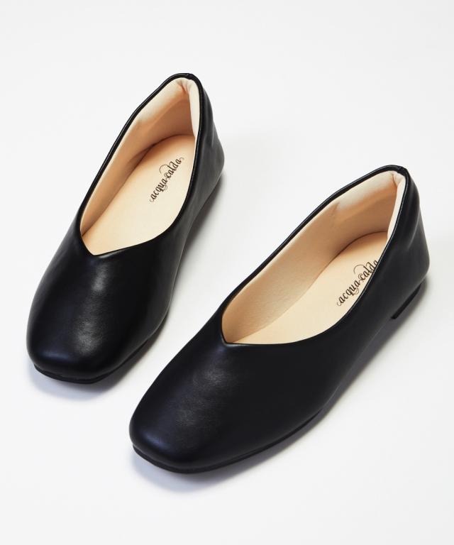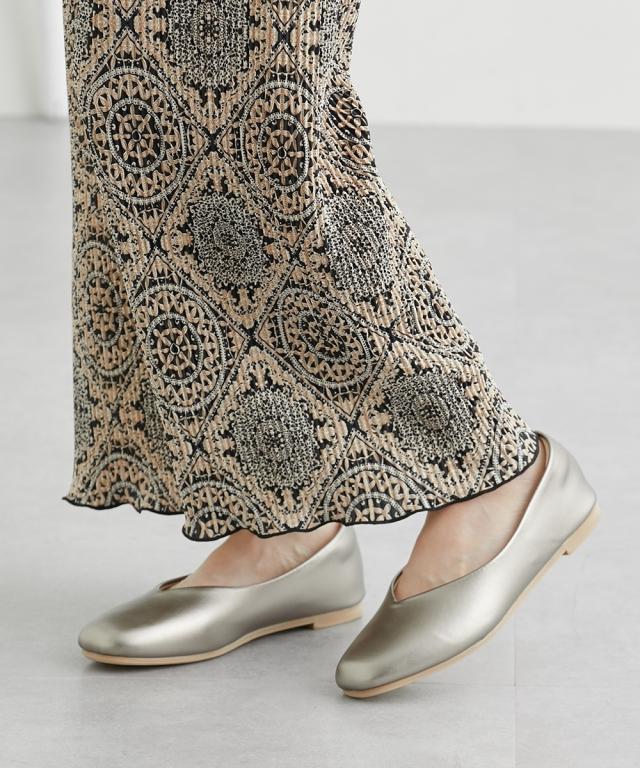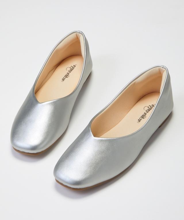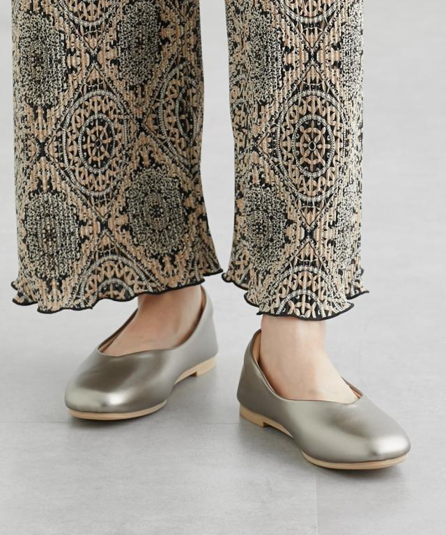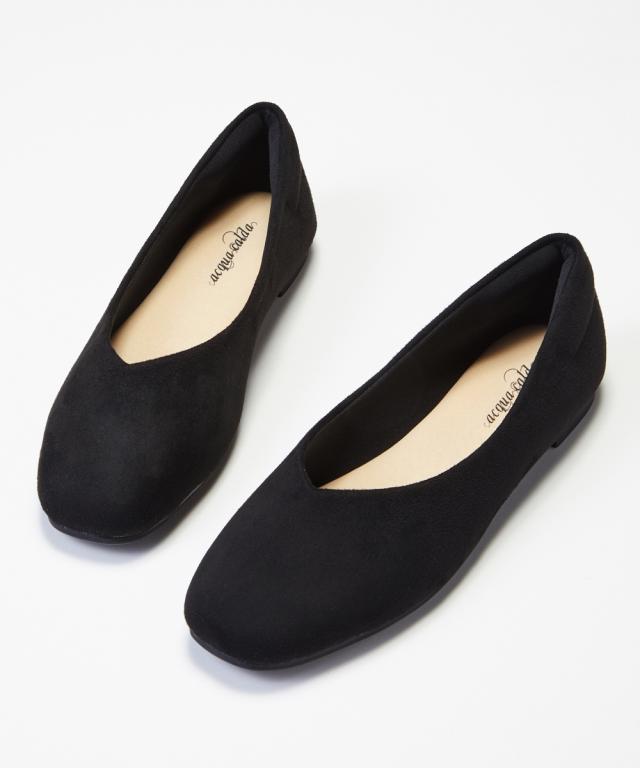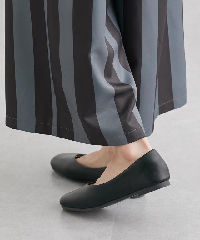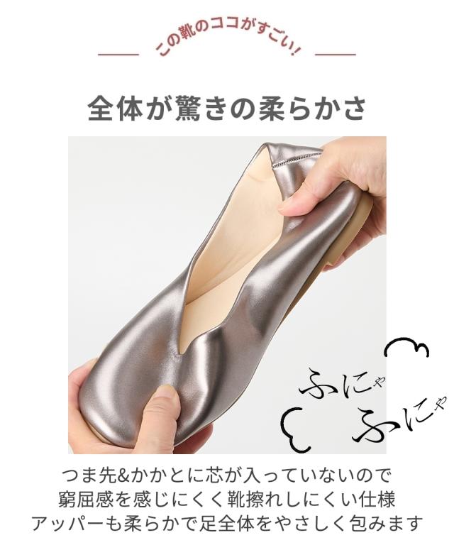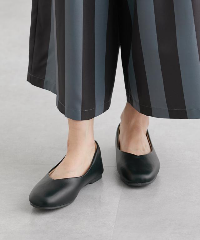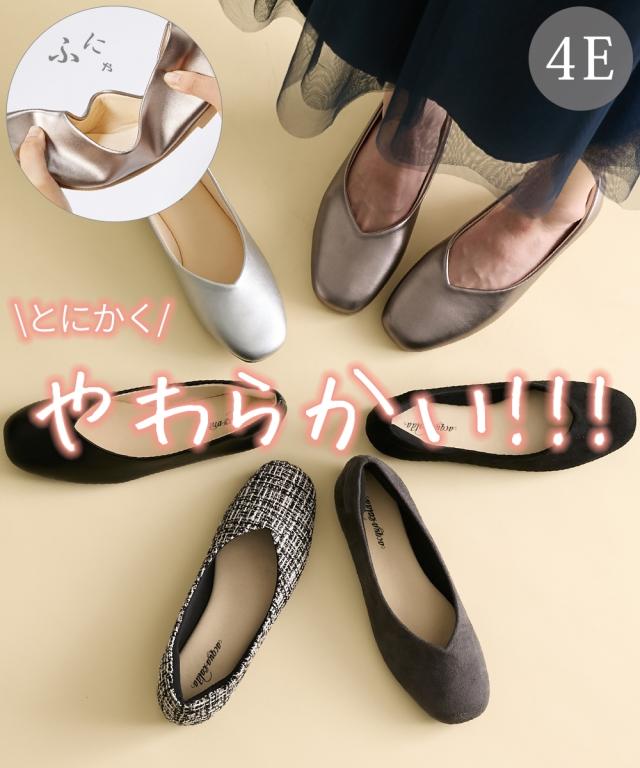 パンプス 大きいサイズ レディース ゆったり幅広 やわらかVカットフラット 低反発中敷 ワイズ4E 26.0〜26.5cm