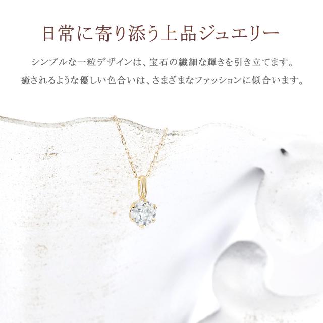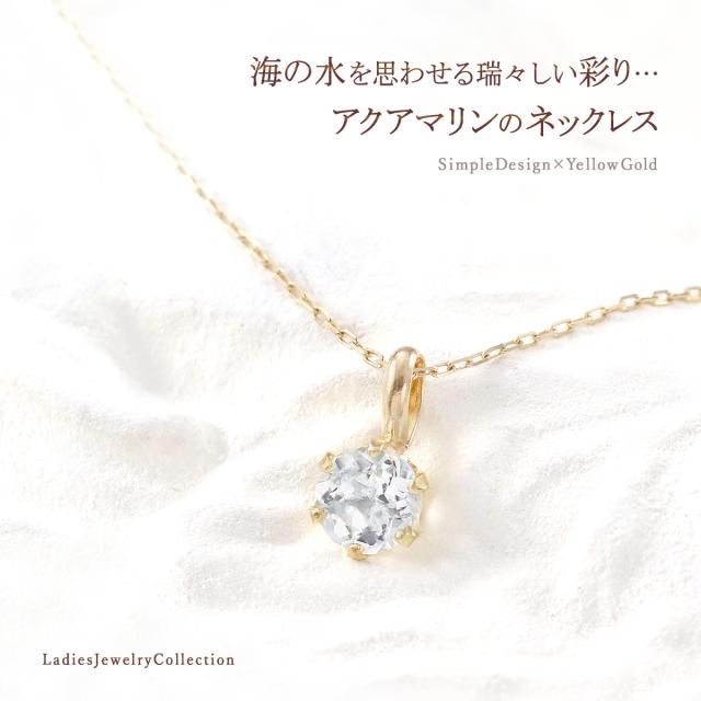 アクアマリン ネックレス レディース イエローゴールド 10金 シンプル 一粒 天然石 プレゼント 記念日ギフト お祝い 誕生日 おしゃれ 10K K10 小振り 小さ目 可愛い カラーストーン 3月 誕生石 彼女 嫁 母 娘 宝石 水色 青 本物 20代 30代 40代 4mm ホワイトデー お返し