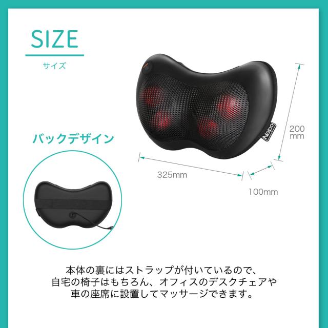- コンパクトにもかかわらずマッサージ効果は抜群です。私は腰痛持ちですが使用しているうちにかなり解消されました。 いろいろな肩こり解消グッズを試してきましたが、コスパ的にはこの商品が最高です!