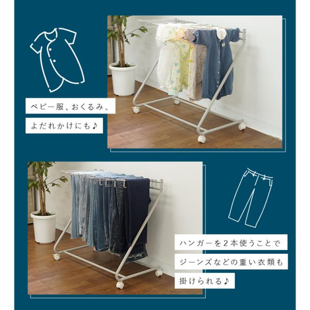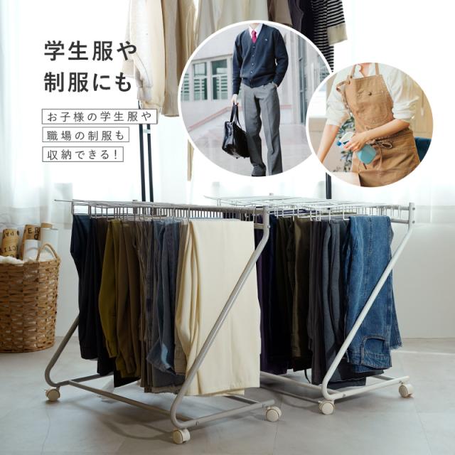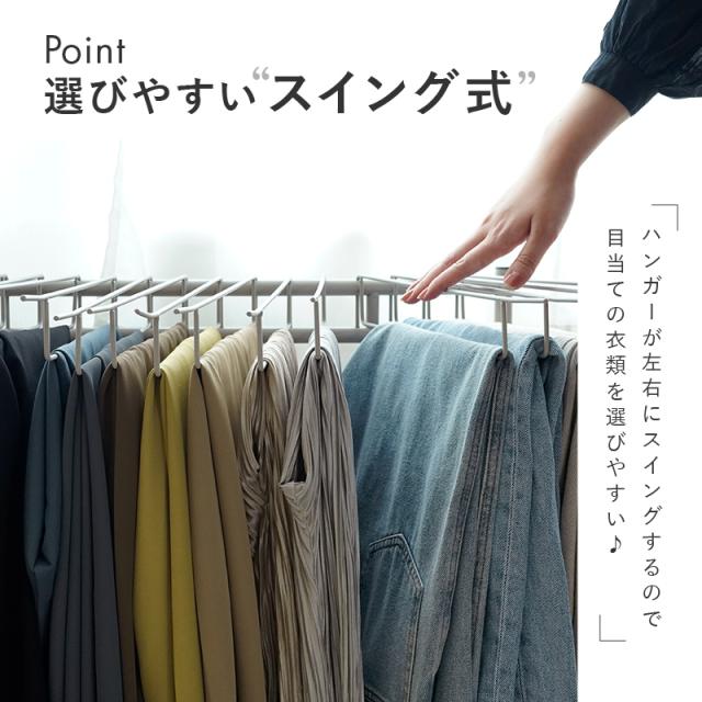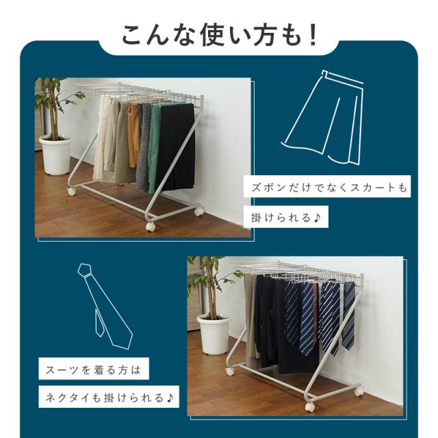 スラックスハンガー キャスター 20本 スラックス ハンガー ズボンハンガー ボトムス スイング式 パンツ スカート スチール製 タオル 組み立て式 ストッパー付き