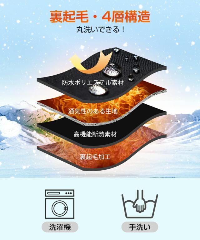 さらに保温材を使用した保温防風デザインで冷たい風をしっかり防いで暖かさを保ちます!