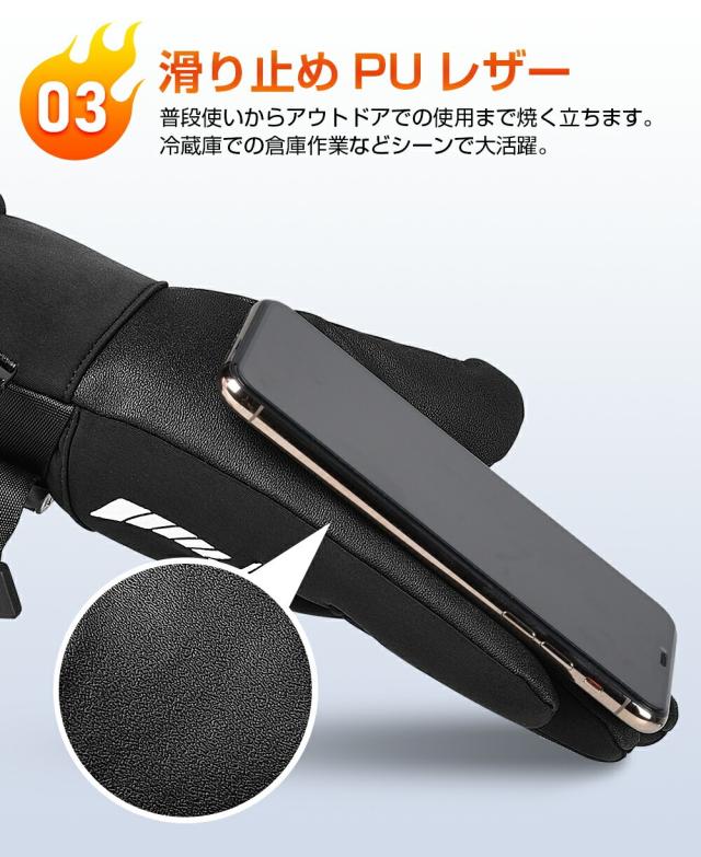 防寒手袋の手のひらと指はすべり止めであり、耐摩耗性のシリコン付き、擦や接着力がアップ、スマホなどを持っても滑りにくく、物を掴む際にしっかりホールドできます。