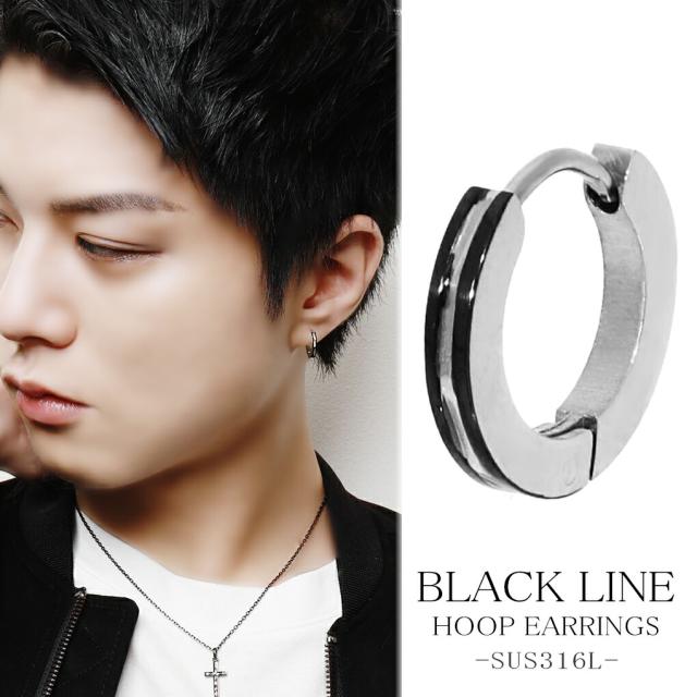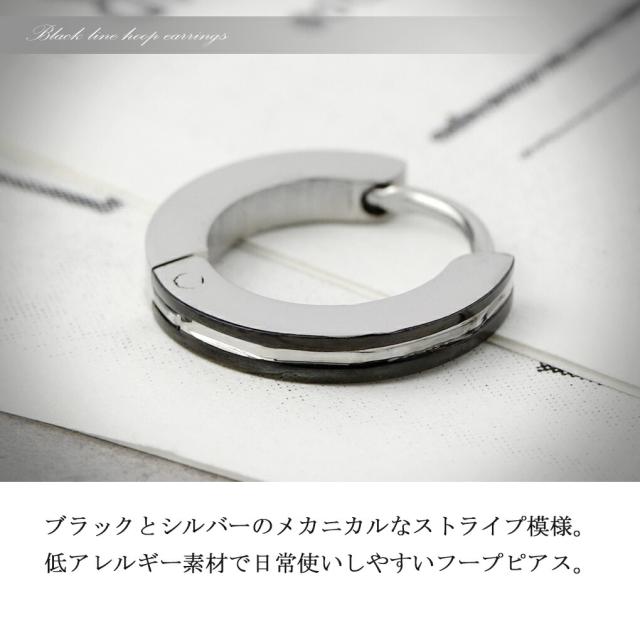 ブラック ライン ステンレス フープピアス 1P 片耳用