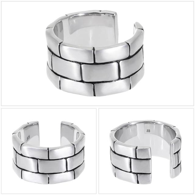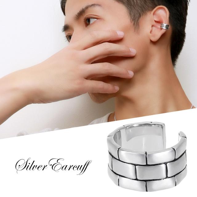 マット仕上げ レンガ模様 シルバー イヤーカフ 1P 片耳 シルバー925 ノンホールピアス シンプル レンガ 煉瓦 ブロック 模様 パターン 石壁 カジュアル