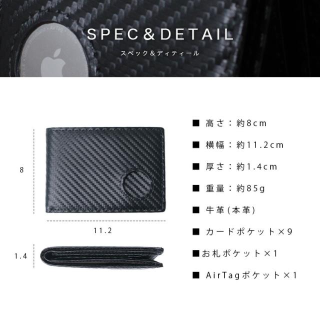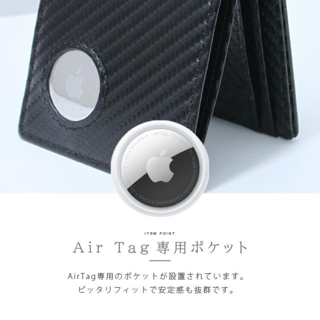 Airtag専用のポケットが特徴の2つ折り財布です。