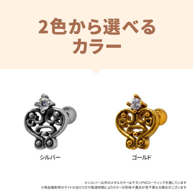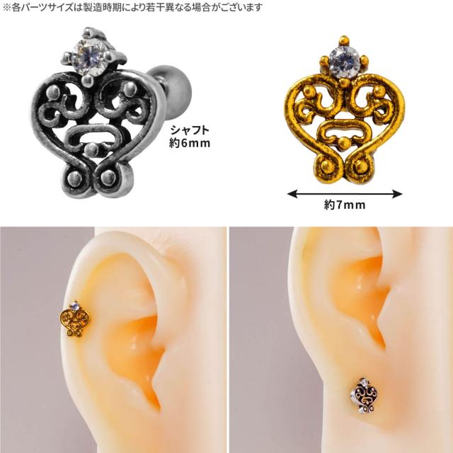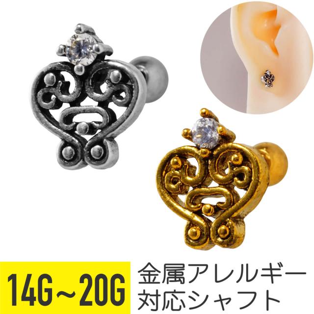 アラベスク ハート ジュエル ストレートバーベル 14G 16G 18G 20G サージカルステンレス ジルコニア ヘリックス 軟骨ピアス ボディピアス