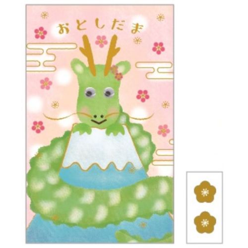 「ぽち袋 目玉付ポチ袋 2枚入り 富士山と辰ピンク 封シール付き グッズ メール便可」