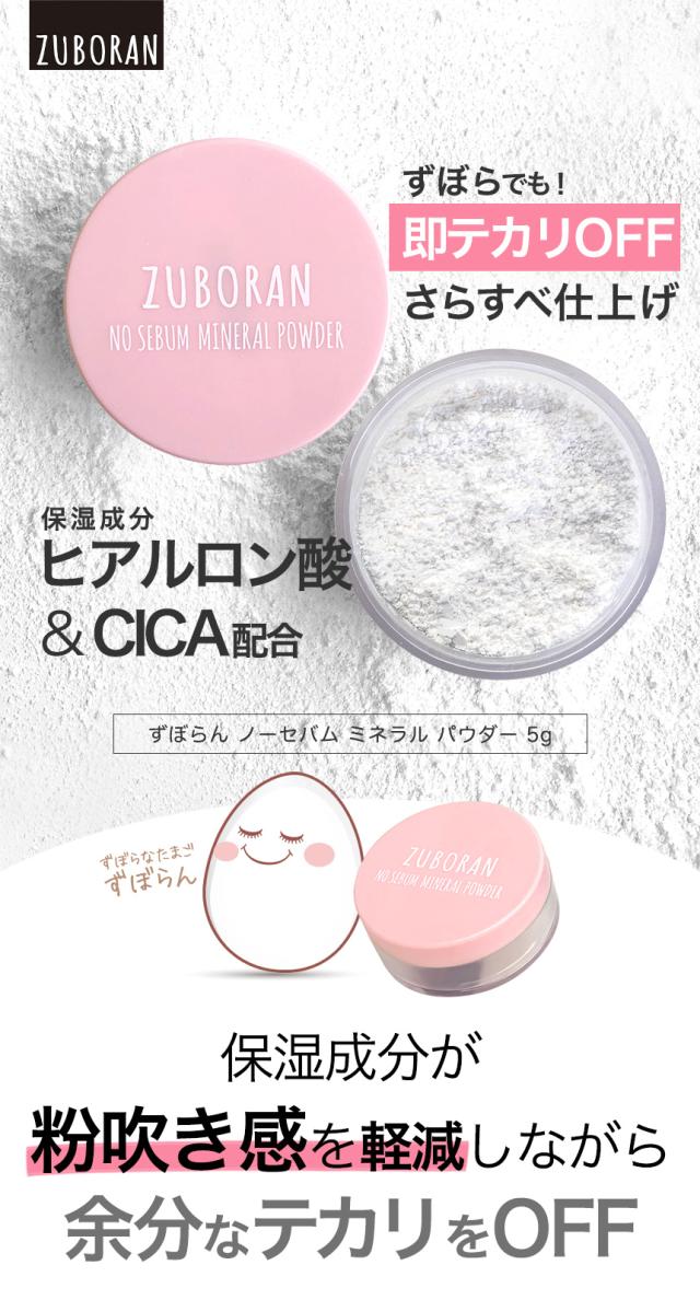 ずぼらん ノーセバム ミネラル パウダー 5g パフ付き / フェイスパウダー メイクアップ コスメ 皮脂 テカリ ベタつき オフ