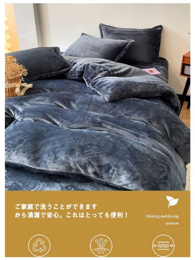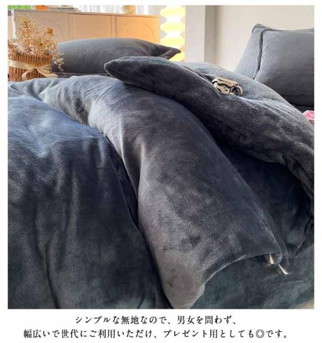| もこもこ体を包み込む、あったか掛け布団カバー3点セット。【冬用起毛素材】 保温性&吸湿性に優れた極細繊維を使用し、柔らかくしなやかな風合いは肌が喜ぶ寝心地です 静電気防止加工が施されているので、冬場の乾燥した空気の中でも静電気が発生しづらく、安心して柔らかい肌触りをお楽しみ頂けます 横側ファスナーがあり、女子で一人ても着脱しやすい! シンプルな無地なので、男女を問わず、幅広いで世代にご利用いただけ、プレゼント用としても◎です。 ご家庭で洗うことができますから清潔で安心。これはとっても便利! | |
