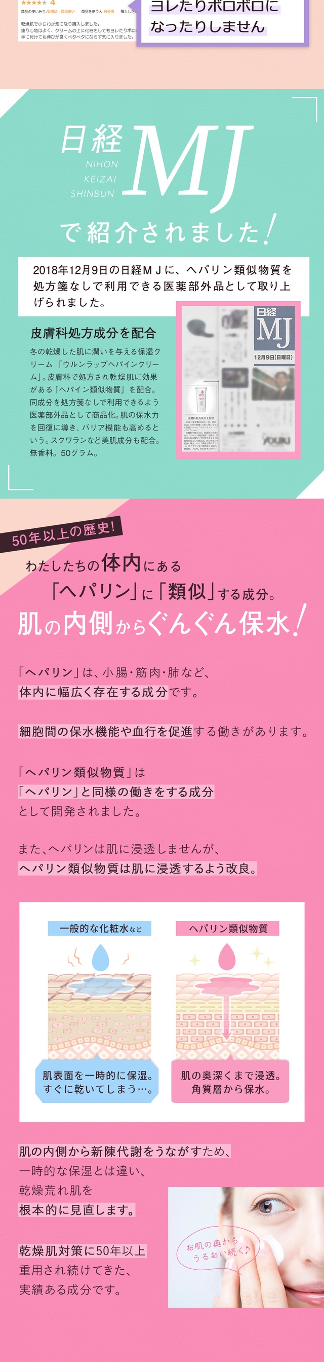 「ヘパリン類似物質」を配合した保湿クリーム。