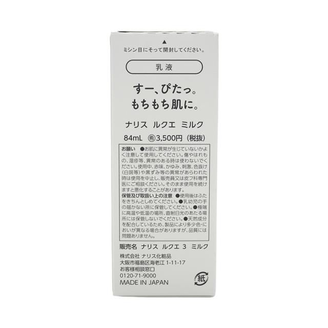 naris ナリス LUQUE ルクエ ミルク 乳液 84ml 無香料 無鉱物オイル 無タール系色素 無エチルアルコール 無パラベン[ギフトラッピング対応]