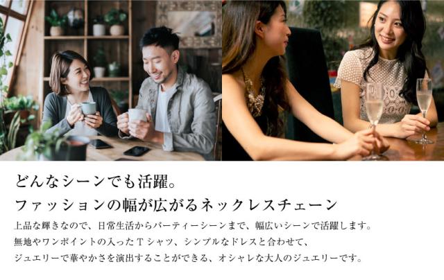 同じペンダントトップでも、チェーンを変えるとまた違った雰囲気になるので、お手持ちのペンダントトップの替えチェーンにもお勧めです。