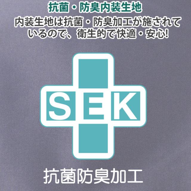 内装の生地は、SEK(一般社団法人繊維評価技術協議会)の基準を満たした抗菌加工を施しているので、清潔!快適!