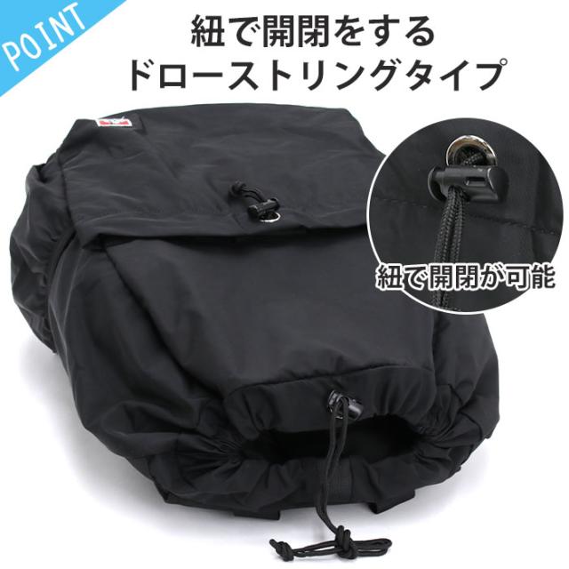 紐で開閉をするドローストリングタイプです。