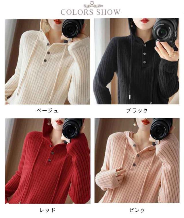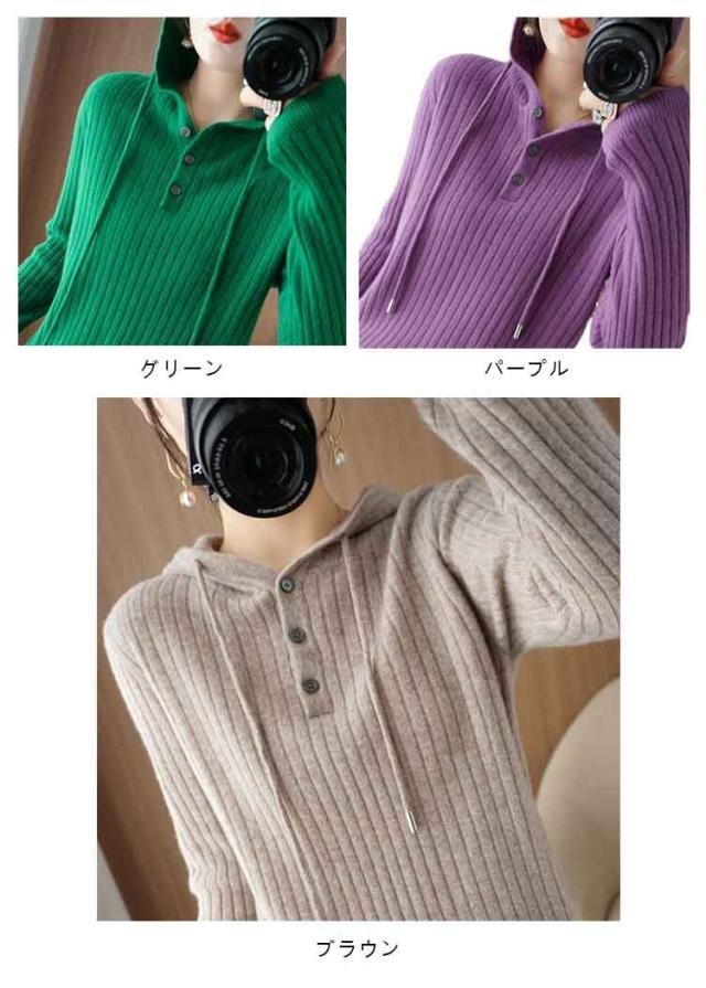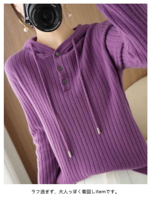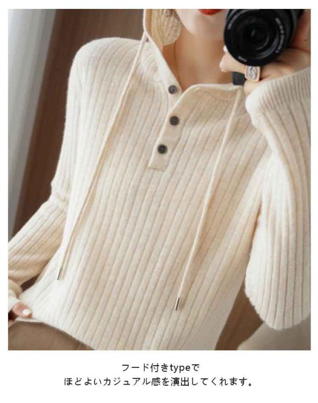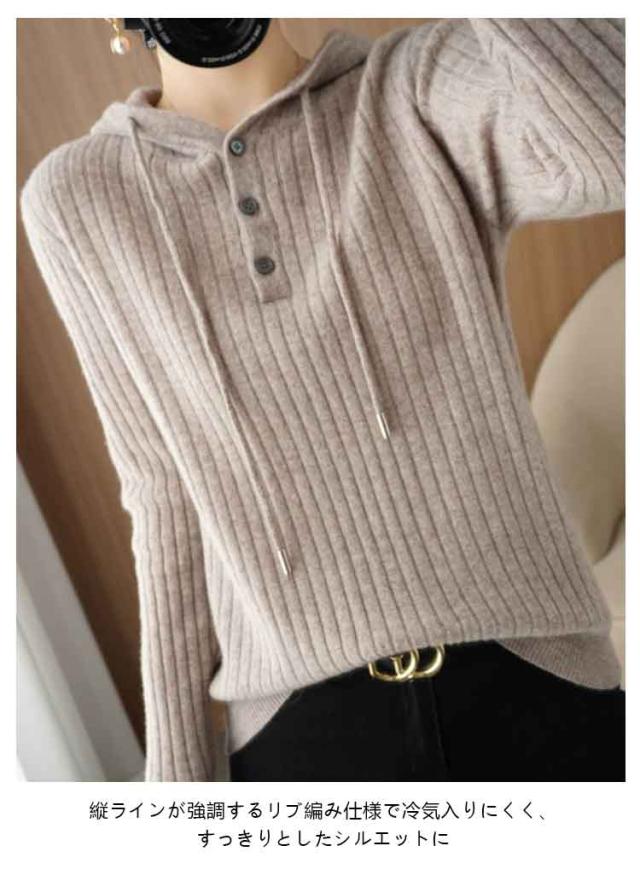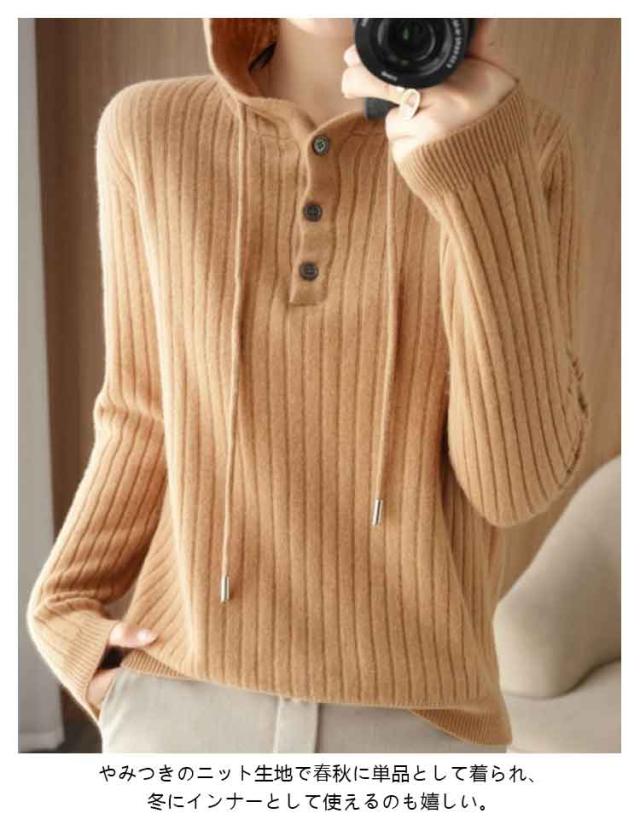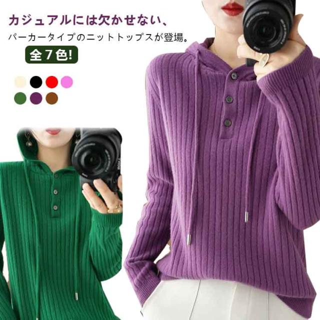 全7色!セーター レディース リブニット ニットパーカー フード付き プルオーバー ニットトップス リブ 長袖 ゆったり レイヤード ニット パーカー 春 秋 冬