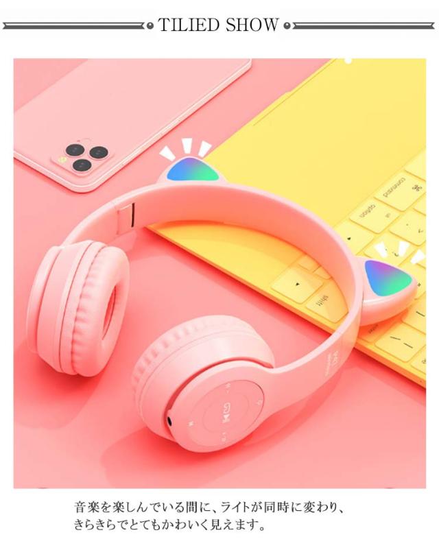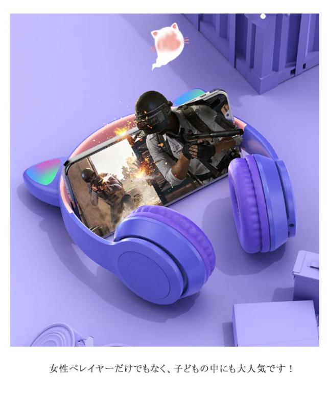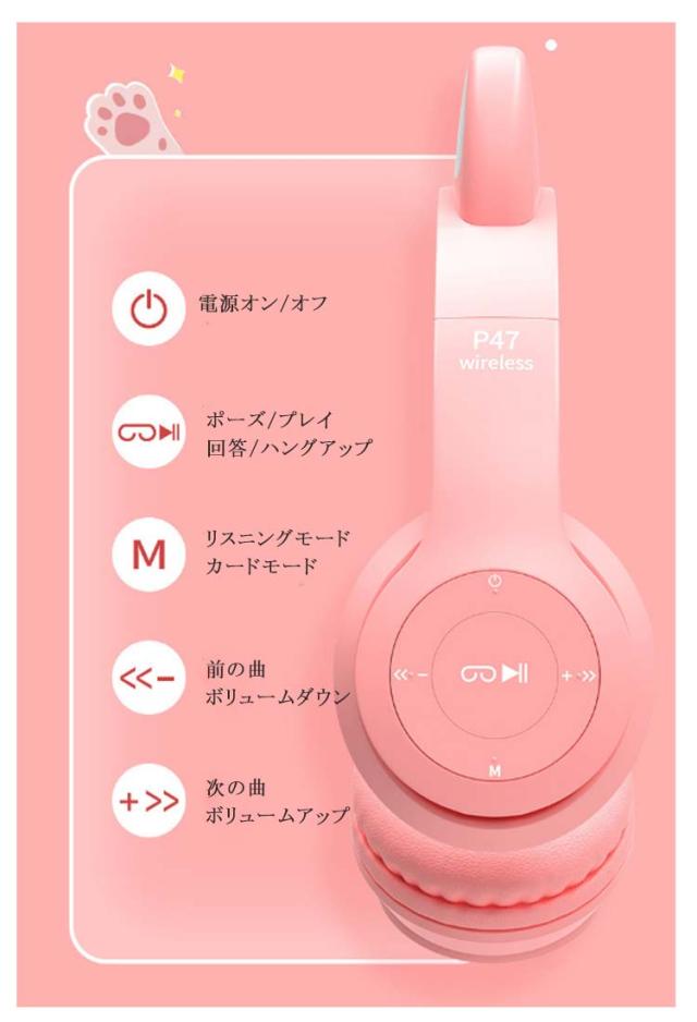 | 可愛い猫耳ヘッドホン。 音楽を楽しんでいる間に、ライトが同時に変わり、きらきらでとてもかわいく見えます。 折りたたみ式で、旅行にも最適で。 1回充電1.5時間、9時間連続使用可能。 女性ペレイヤーだけでもなく、子どもの中にも大人気です! Bluetooth5.0技術を採用し、10メートルの感応範囲です。 | |