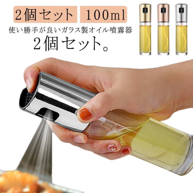 オイルスプレー 2個セット 噴霧器 オイル噴霧器 100ml 醤油さし オイルボトル オイルミスト 調味料 ガラス製 油 醤油 酢 液体 キャンプ アウトドア 安全 安心 プッシュ キッチン オイル