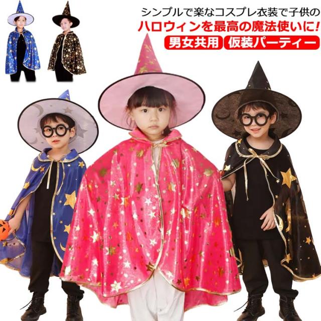 ハロウィン 衣装 子供 コスプレ 魔法使い マント 男の子 女の子 ベビー キッズ コスチューム 赤ちゃん ベビー キッズ 着用便利 悪魔 あくま 星 月 ほし つき 仮装パーティー 衣装 プレゼント ギフト 仮装パーティー キッズコスチューム 男女共用