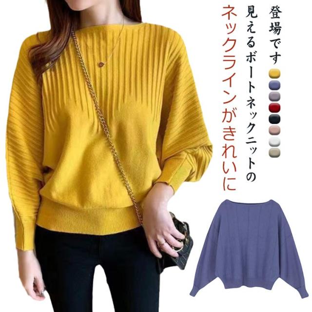 セーター レディース ニットセーター ボートネック ドルマンシルエット ゆるニット 体型カバー 2タイプ フリーサイズ