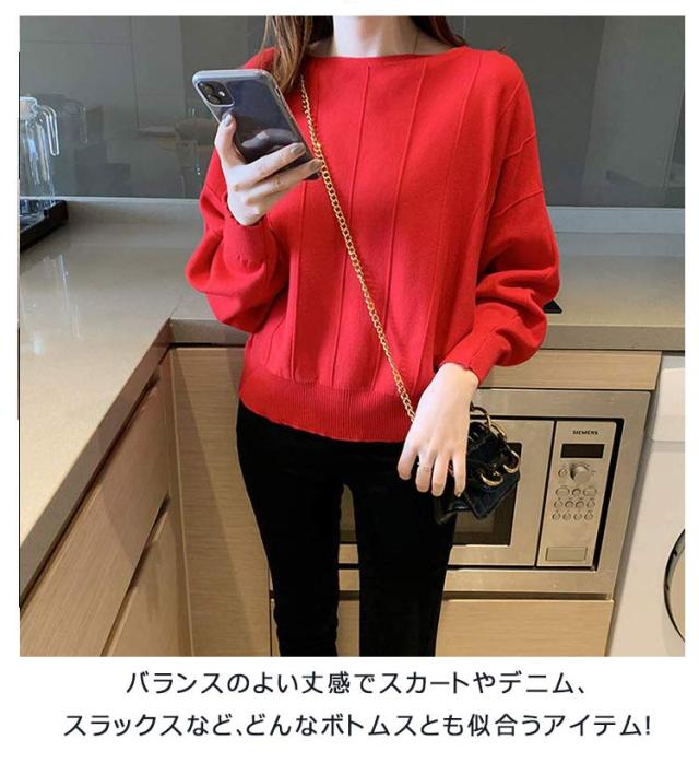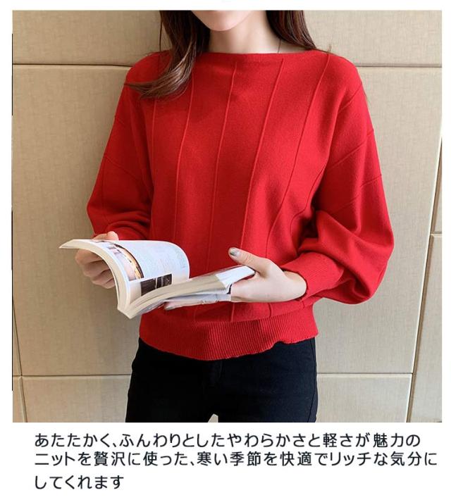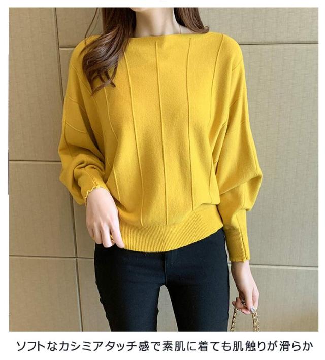 | ネックラインがきれいに見えるボートネックニットの登場です。 ソフトなカシミアタッチ感で素肌に着ても肌触りが滑らか◎ ドルマンでゆったりとした身幅と程よく引き締まった袖口が女性らしいシルエットを演出します。 豊富なカラバリも魅力です♪ あたたかく、ふんわりとしたやわらかさと軽さが魅力のニットを贅沢に使った、寒い季節を快適でリッチな気分にしてくれます。 バランスのよい丈感でスカートやデニム、スラックスなど、どんなボトムスとも似合うアイテム! | |
