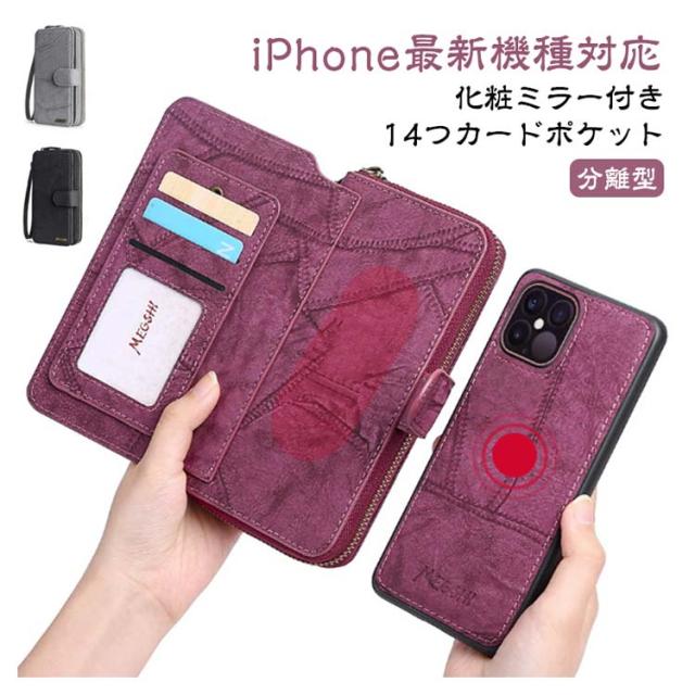 ミラー付き iPhone15 ケース 手帳型ケース 分離型 スマホケース ウォレット型 ケース 財布型 マグネット 分離式 手帳型 iPhoneケース 着脱式 マグネット内蔵 カード収納 カード入れ スタンド機能