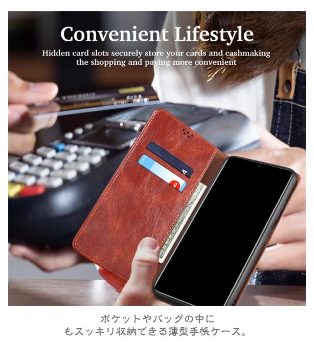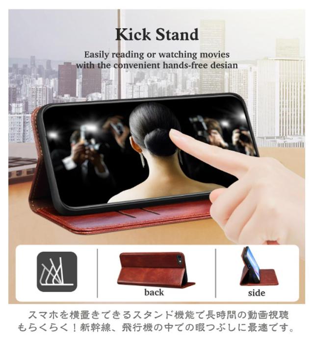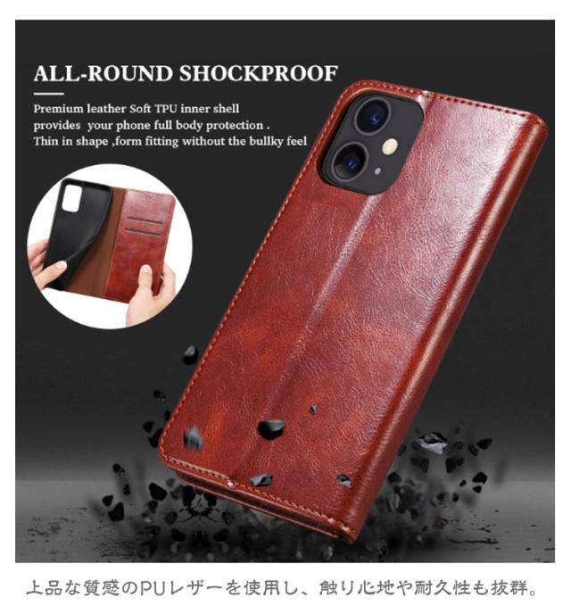 | 【対応機種】iPhone 【素材】PUレザー TPU 【セット内容】スマホケース(iPhone本体は同梱されておりません) 【特徴】 ポケットやバッグの中にもスッキリ収納できる薄型手帳ケース。 内側には交通系カードやクレジットカードが入るカードポケットを搭載。 それに、お札やレシートなどが収納できる大きめポケットが付いています。 お出かけ際に、これだけを持っていけば十分! スマホを横置きできるスタンド機能で長時間の動画視聴もらくらく!新幹線、飛行機の中での暇つぶしに最適です。 使いやすさを重視し、快適な開閉ができるような磁力に設計しました。 上品な質感のPUレザーを使用し、触り心地や耐久性も抜群。 カメラレンズ周囲の穴に段差を設けることによって、iPhoneの突出したレンズを保護。 ストラップホールを搭載しており、お気に入りストラップを付けられます。 | |