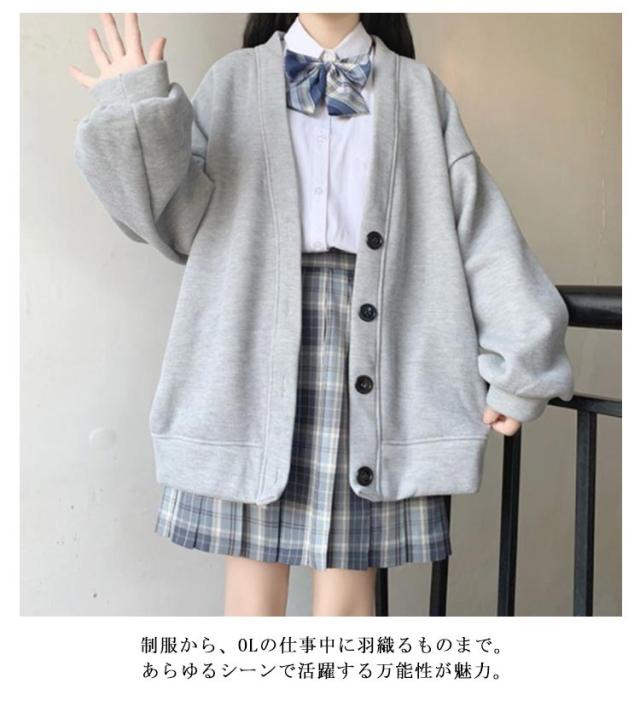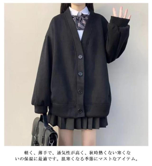 スウェット スクールカーディガン レディース 学生服 高校生 薄手&裏起毛 Vネック 無地 羽織り 中学生 アウター 黒 女子 制服 秋冬 春 大きいサイズ 送料無料