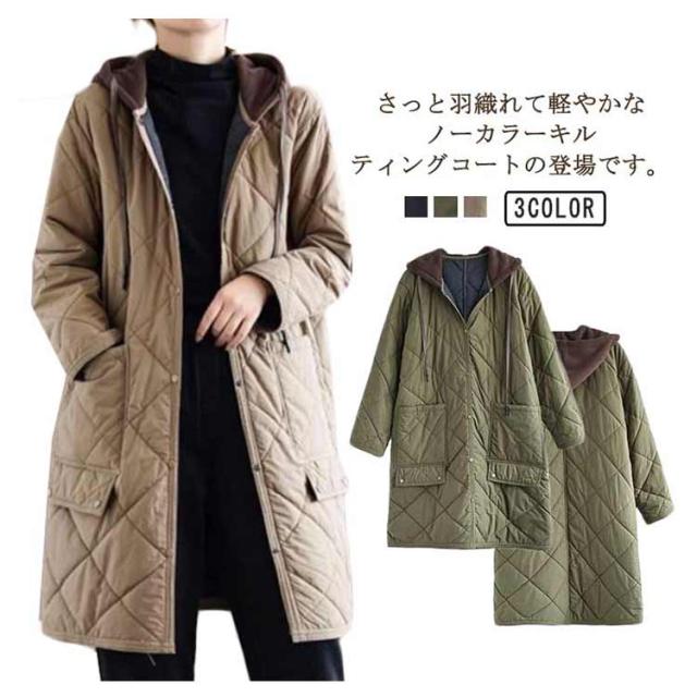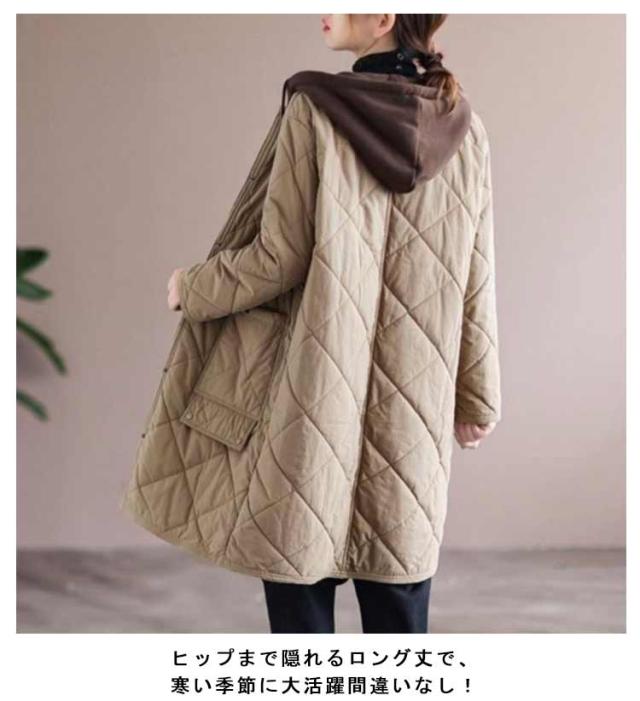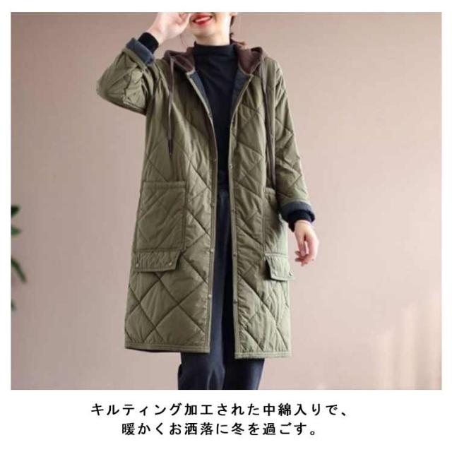 モッズコート レディース 中綿コート キルティング ゆったり 中綿入れ フード付き ゆったり 大きいサイズ ロングコート 韓国ファッション アウター お洒落 秋冬 羽織り 体型カバー 送料無料