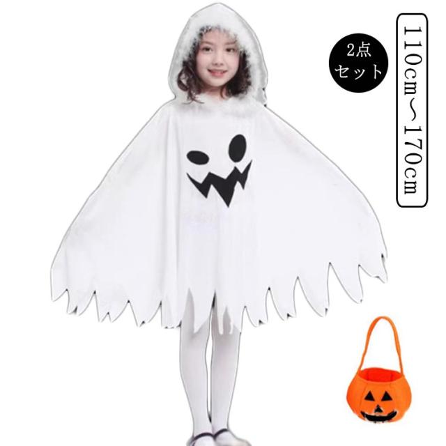 2点セット ハロウィン 仮装 衣装 キッズ 子供 おばけポンチョ おばけ マント ケープ ジュニア 幼児 110 120 130 140 150 160 170 女の子 男の子 コスプレ仮装 コスチューム 衣装 変身 幽霊 着ぐるみ お化け なりきり ハロウィンコスプレ パーティー イベント 小物 送料無料