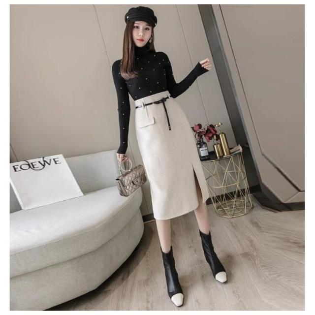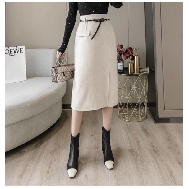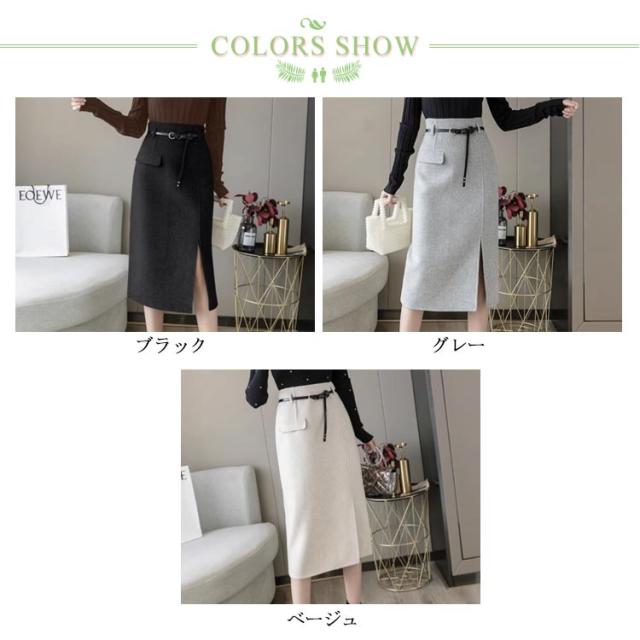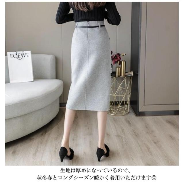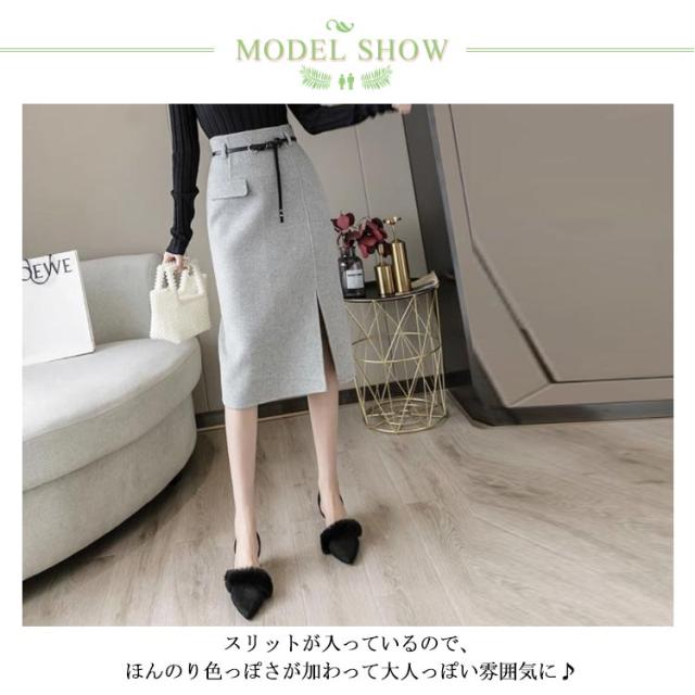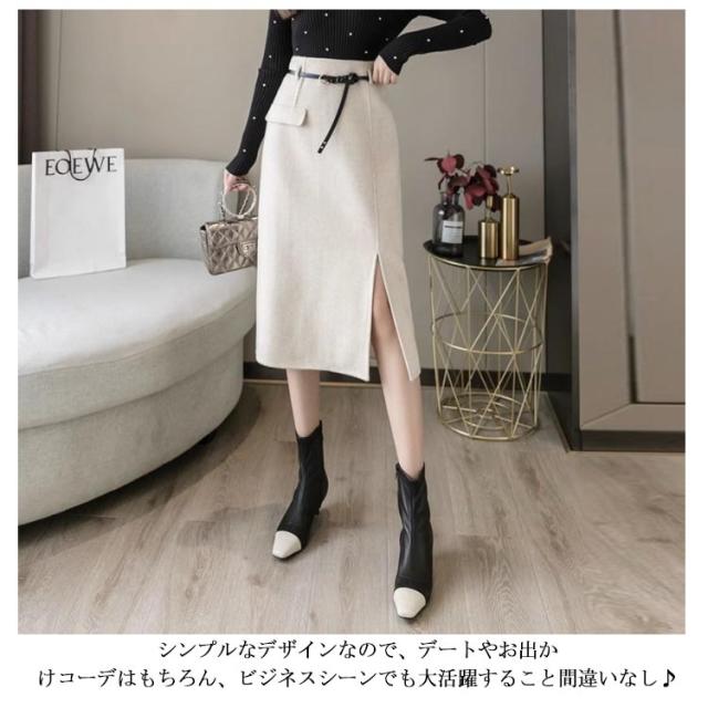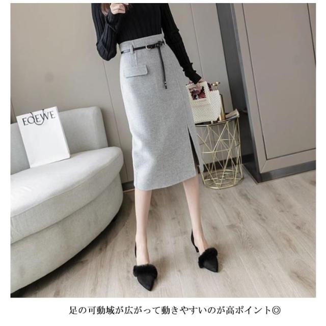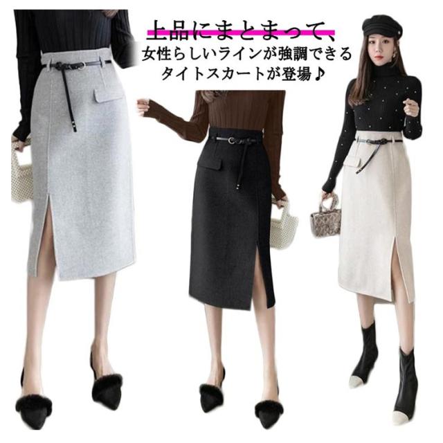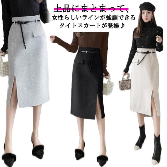 ウールライク タイトスカート レディース スカート 春 秋 冬 ひざ丈 ハイウエスト Aライン 美脚 無地 細見え スリット お出かけ オフィス OL 二次会 デート カジュアル 通勤