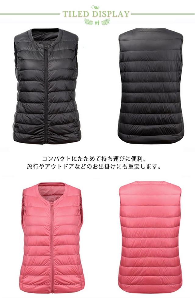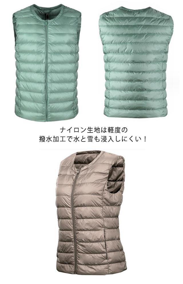インナーダウンベスト ベスト 袖なし クルーネック ダウンベスト 黒 濃紺 登山 山登り キャンプ 大きいサイズ 50代 40代 30代 60代