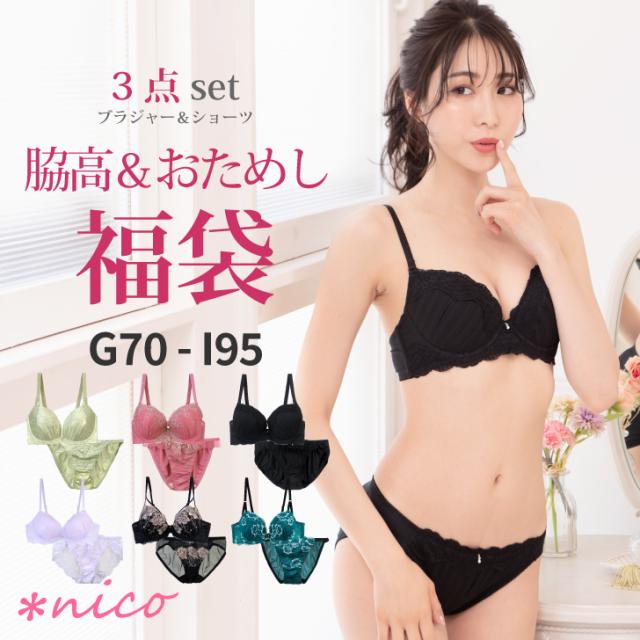 商品名(商品番号):G70-I95 大きいサイズ ブラセット3組入り 中身が見える& おまかせ 脇高 下着福袋 (x-008)